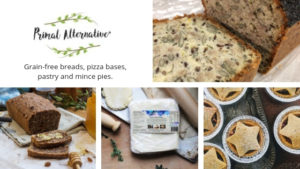 - Primal Alternative Grain-free breads, pizza bases, pastry and mince pies.